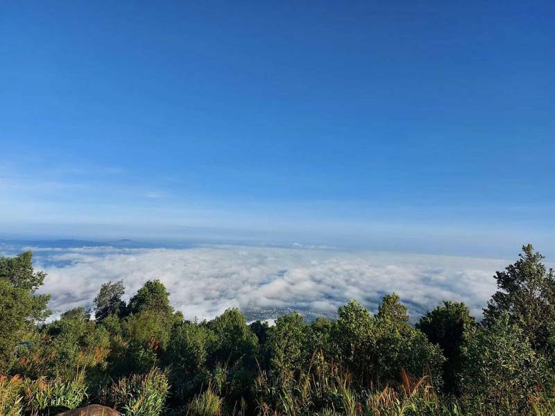 Với độ cao hơn 800m so với mực nước biển, nơi đây đã được xem như một chốn “bồng lai”, du khách đến leo núi ngắm bình minh có thể bắt được những cụm mây trôi lơ lửng ngang tầm với.