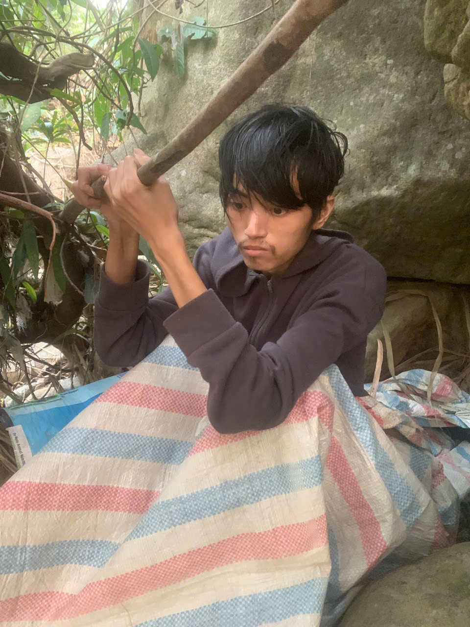 Làm giả giấy tờ để trốn nghĩa vụ quân sự và trốn tránh lệnh truy nă, Vũ Văn Việt đă sống chui lủi trong điều kiện khắc nghiệt, chỉ uống nước suối và ăn nơn cây chuối rừng. Ảnh: CALC