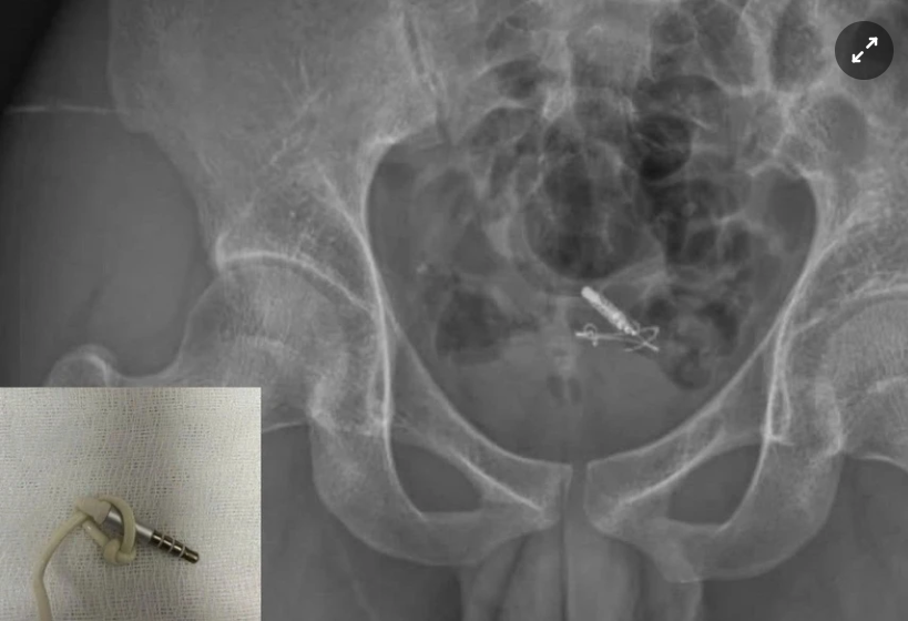 Trước đó, khi xem các clip sex và hướng dẫn trên mạng, thanh niên này làm theo quy trình thủ dâm trước để có dịch bôi trơn, sau đó tự nhét dây tai nghe dài khoảng hơn 1 mét đã buộc sẵn các nút qua niệu đạo vào bàng quang để tìm khoái cảm.