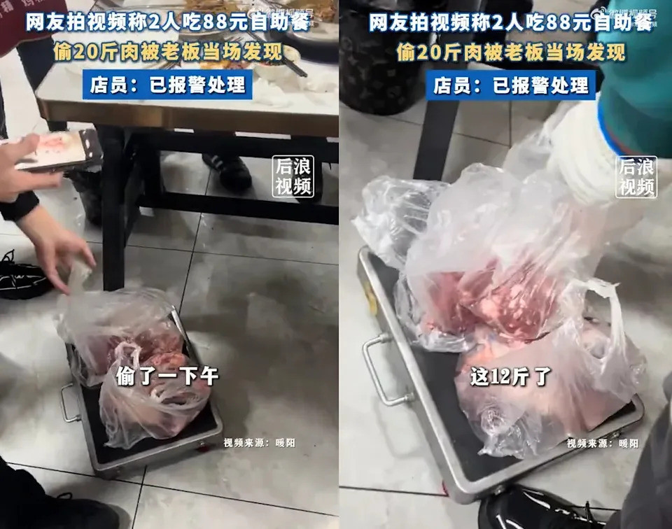 Hai thực khách bị phát hiện trộm tới 10kg thịt của một nhà hàng buffet lẩu ở Tế Nam, tỉnh Sơn Đông, Trung Quốc.