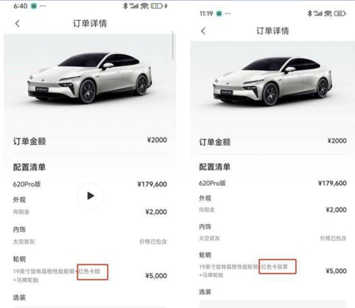 Việc bỏ ra thêm 5.000 nhân dân tệ (khoảng gần 18 triệu đồng) để nâng cấp phanh hiệu suất cao trên chiếc Dongfeng Yipai eπ007 hóa ra lại chỉ mang đến cho chủ xe một bộ vỏ nhựa đỏ bọc bên ngoài phanh thông thường. Ngoài ra, hóa đơn mua hàng điện tử còn bị sửa thông tin “ngàm phanh màu đỏ hiệu suất cao” thành “lớp phủ phanh đỏ”.