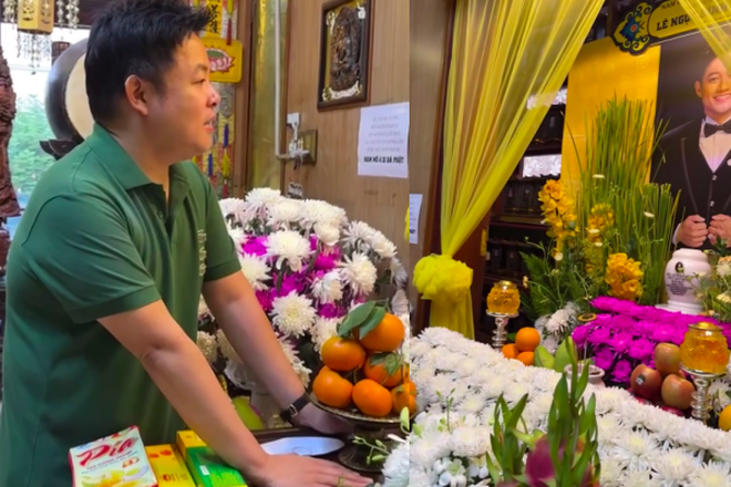 Quang Lê đứng trước bàn thờ Quý Bình.