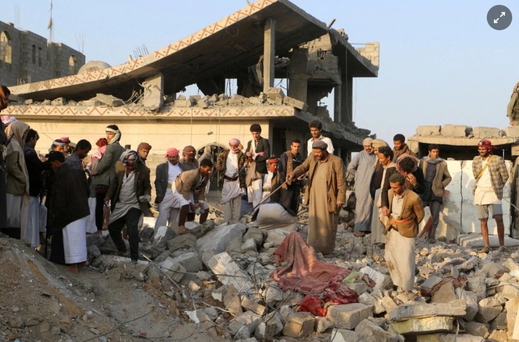 Đống đổ nát của một ngôi nhà bị trúng không kích của Mỹ tại Saada, Yemen, ngày 16/3. Ảnh: Reuters.