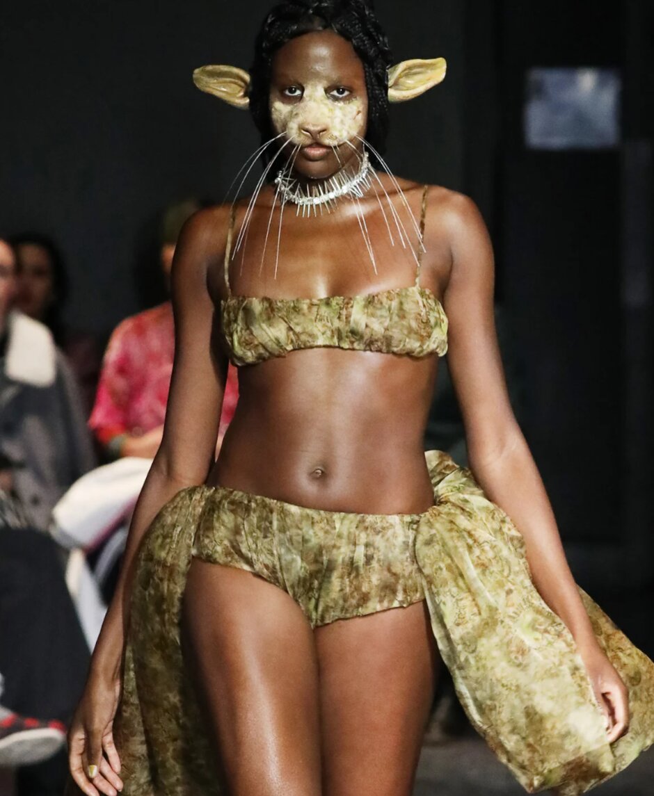 Một người ủng hộ lâu năm của đồ giả, nghệ sĩ trang điểm và doanh nhân Isamaya Ffrench đã biến người mẫu thành những sinh vật có tai nhỏ cho Burberry; người ngoài hành tinh cho Paco Rabanne; và động vật cho Collina Strada.