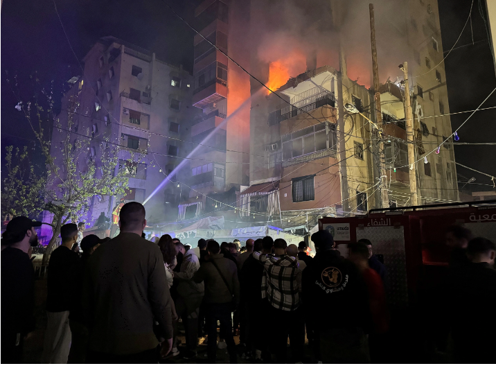 Hình ảnh từ hiện trường vụ tấn công mới nhất do Israel tiến hành ở Li Băng cho thấy một tầng của tòa nhà chung cư bốc cháy. Các tầng khác dường như tương đối không bị ảnh hưởng.