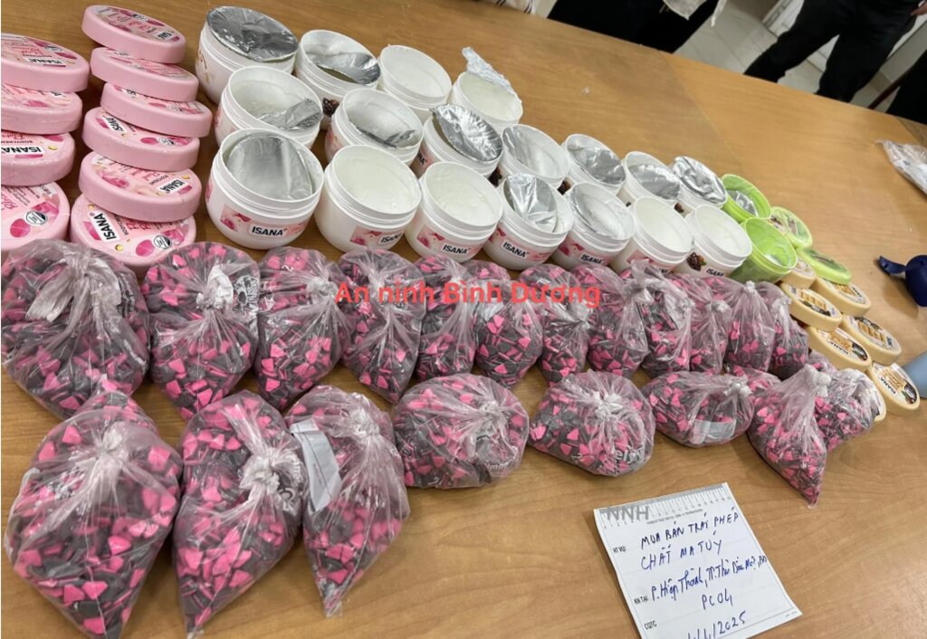 Ập vào bắt quả tang Hoàng, cảnh sát thu giữ gần 16kg ma túy được ngụy trang tinh vi trong túi bánh kẹo, chai đựng mỹ phẩm trên địa bàn tỉnh Bình Dương.