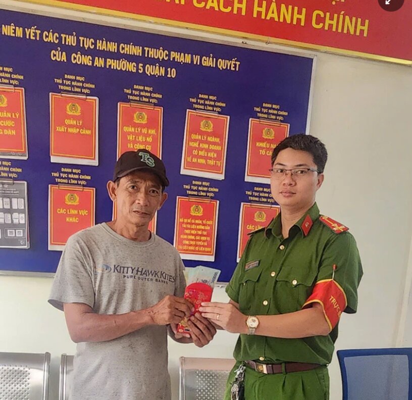 Anh Lê Văn Út cất giữ bao lì xì chứa tiền, chờ người đánh rơi quay lại hỏi nhưng không thấy ai. Đến ngày 25/3, anh mang bao lì xì chứa tiền đến Công an phường 8, quận 10 giao nộp, nhờ tìm người đánh mất để trả lại.