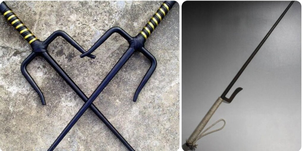 Bút giá xoa và thập thủ - món vũ khí chuyên khắc chế kiếm Nhật (ảnh: Kk News)