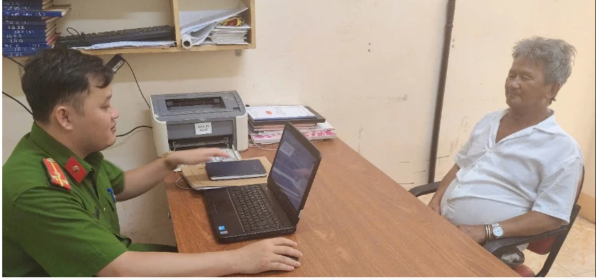 Ông Lê Văn Được (áo trắng) tại Công an phường Phú Tài, TP. Phan Thiết, tỉnh Bình Thuận. CABT