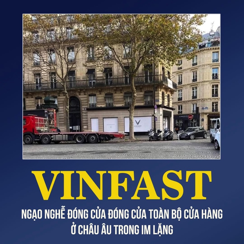 Theo nguồn tin của tờ Elektroauto-News tại Đức, Vinfast sẽ đóng cửa toàn bộ các cửa hàng và trung tâm dịch vụ vào ngày 9/5/2025 tới, sa thải hầu hết nhân viên. Tức là Vinfast đă gần như chấm dứt hoạt động bán hàng tại Châu Âu - nơi công ty này từng có tham vọng mở khoảng 50 showroom tại đây.