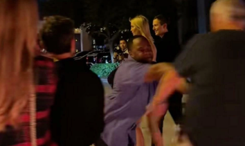 Khi có một người đàn ông đi bộ tiến gần cặp đôi, một mật vụ mặc áo sơ mi màu tím đã đưa tay ra che chắn để giữ khoảng cách. Người đàn ông khi này với tay ra sau, nắm nhẹ lấy cánh tay mật vụ.