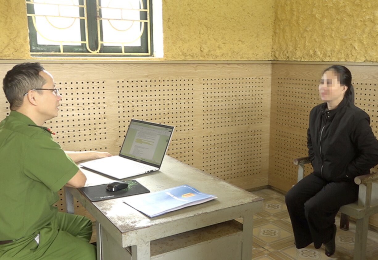 Đối tượng Lê Thị Ánh Sương khai báo tại cơ quan công an