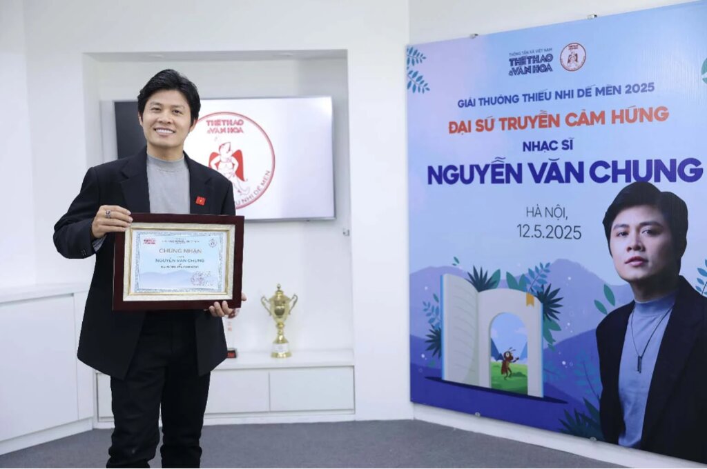 Nhạc sĩ Nguyễn Văn Chung nhận bằng chứng nhận là Đại sứ truyền cảm hứng của Giải thưởng Thiếu nhi Dế Mèn 2025