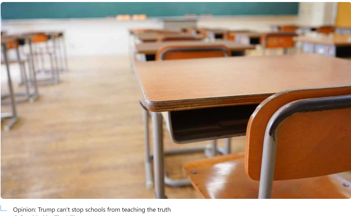 Sự thật không phải là vấn đề đảng phái. Không một chính quyền tổng thống nào nên cố gắng đưa ra quan điểm chính trị về cách các trường học hướng dẫn học sinh về lịch sử và cuộc sống ngày nay. Nếu Quốc hội do Đảng Cộng hòa kiểm soát không ngăn chặn nỗ lực cắt giảm tài trợ cho các trường học từ chối thay thế giáo dục bằng tuyên truyền của chính quyền Trump, thì tòa án nên và có thể sẽ làm như vậy.