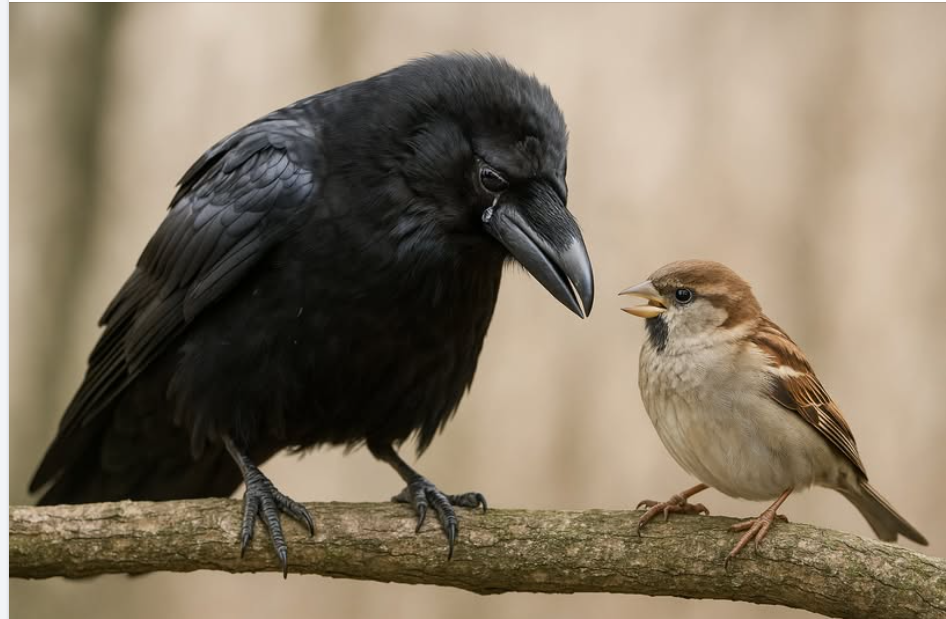 Đó là một con chim sẻ. Nhỏ bé, giản dị, màu xám như vỏ cây. Nó nhảy đến bên con quạ, ngậm một mẩu bánh mì khô trong mỏ. Rồi nó quay lại, mang theo một giọt nước, một chiếc ổ bằng lá khô, và xây tổ dưới gốc cây.