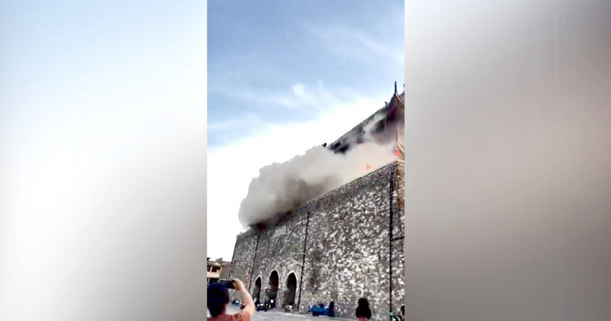 VIDEO ĐỘC ĐÁO: Trần nhà của Tháp Trống Phong Dương 650 năm tuổi của Trung Quốc sụp đổ, khiến du khách phải chạy tán loạn