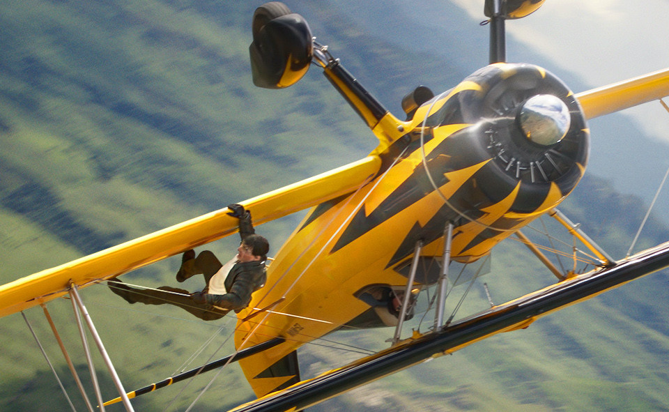 Ngoài đời thật, phân cảnh này được quay ở độ cao 3.000m so với mực nước biển, trên chiếc phi cơ Stearman đang bay với vận tốc hơn 200 km/h. Tại Nam Phi giữa thiên nhiên hiểm trở của dãy Drakensberg, Tom Cruise phải đối mặt với đủ mọi thử thách: gió mạnh như bão, một phi công cố tình điều khiển máy bay lạng lách nhằm hất anh rơi xuống, sự xuất hiện bất ngờ của đàn kền kền địa phương và tầm nhìn hoàn toàn bị che khuất khi máy bay xuyên qua tầng mây dày đặc.