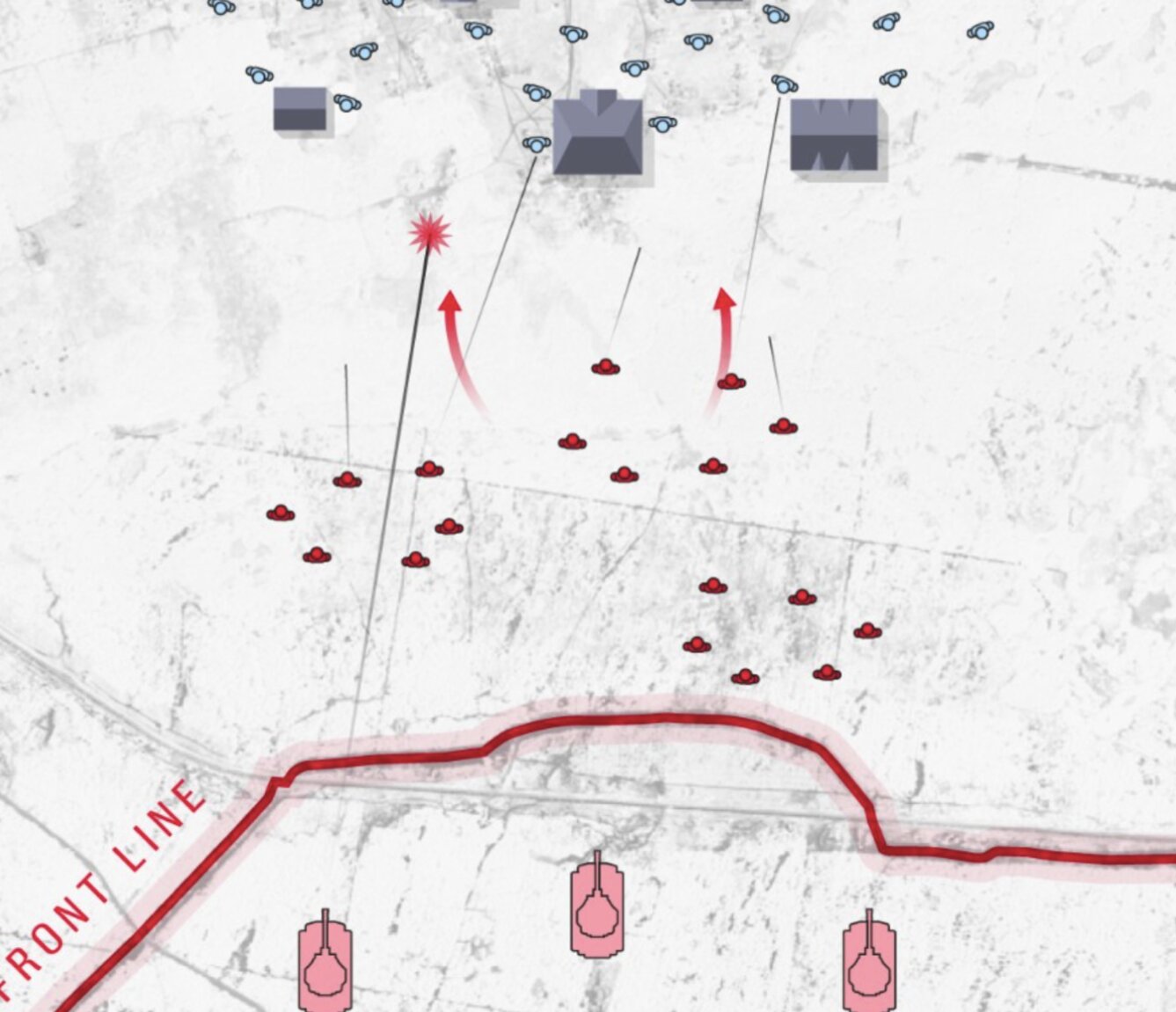 "Toàn bộ quân đội Nga đang sử dụng chiến lược tam giác" - Serhii Kuzan, chủ tịch Trung tâm An ninh và Hợp tác Ukraine cho biết. "Chúng tôi gọi đó là chiến lược và cuộc chiến kiệt sức".