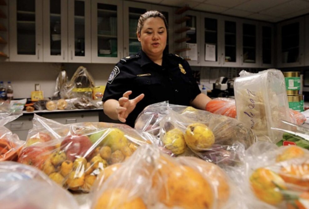 Chuyên gia giám sát nông nghiệp của CPB, xử lý các mặt hàng bị tịch thu từ du khách quốc tế tại Sân bay George Bush tại Houston, bang Texas - Ảnh: houstonchronicle.com