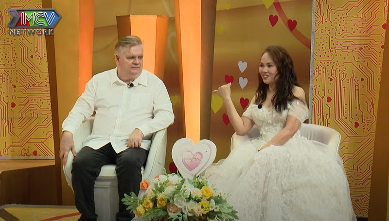 Cô Mai An và chồng ngoại quốc trên sóng Vợ chồng son. Ảnh cắt từ clip Vợ chồng son
