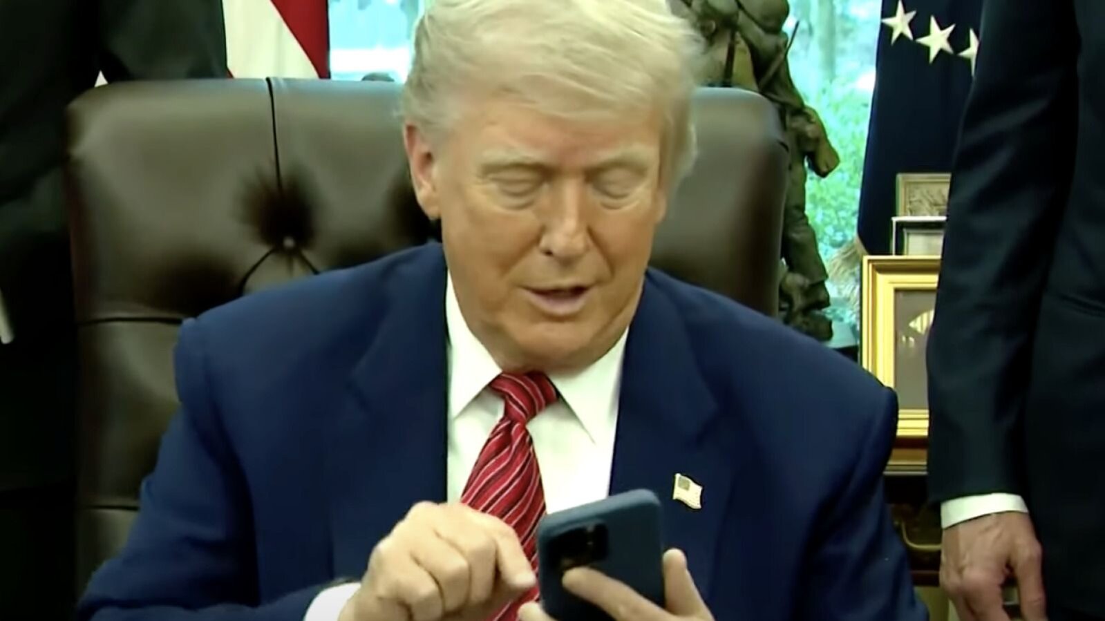 Một bức ảnh mới tiết lộ rằng hình nền trên iPhone của Tổng thống Trump là hình ảnh ông đang chỉ tay.