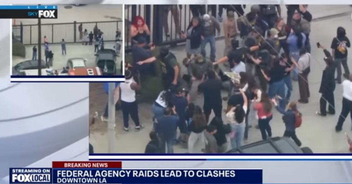 Hỗn loạn bùng nổ khi các đặc vụ ICE tiến hành các cuộc đột kích nhập cư ở trung tâm thành phố Los Angeles – Người biểu t́nh ném vật thể, ch&
