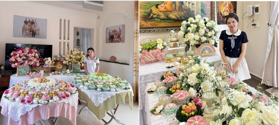 “Ban đầu mình chưa có vốn, cũng không được học hành bài bản về việc sắp xếp mâm lễ và phối màu nên chỉ làm theo cảm tính và sở thích.