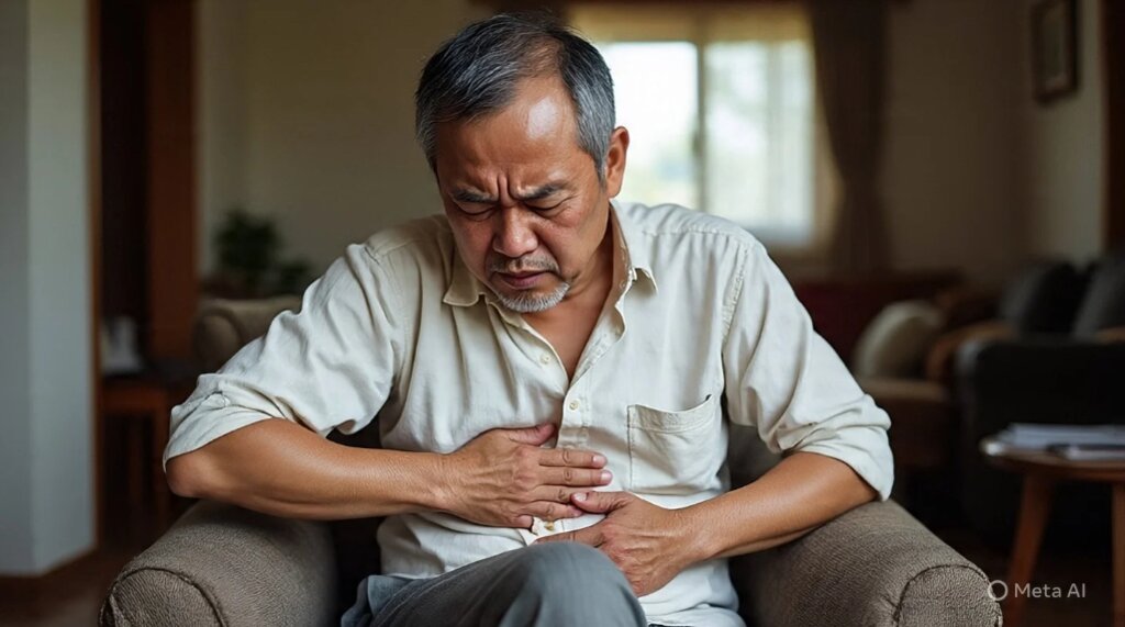 Đau bụng vùng hạ sườn phải hoặc thượng vị: Cơn đau có thể âm ỉ hoặc dữ dội, liên tục.