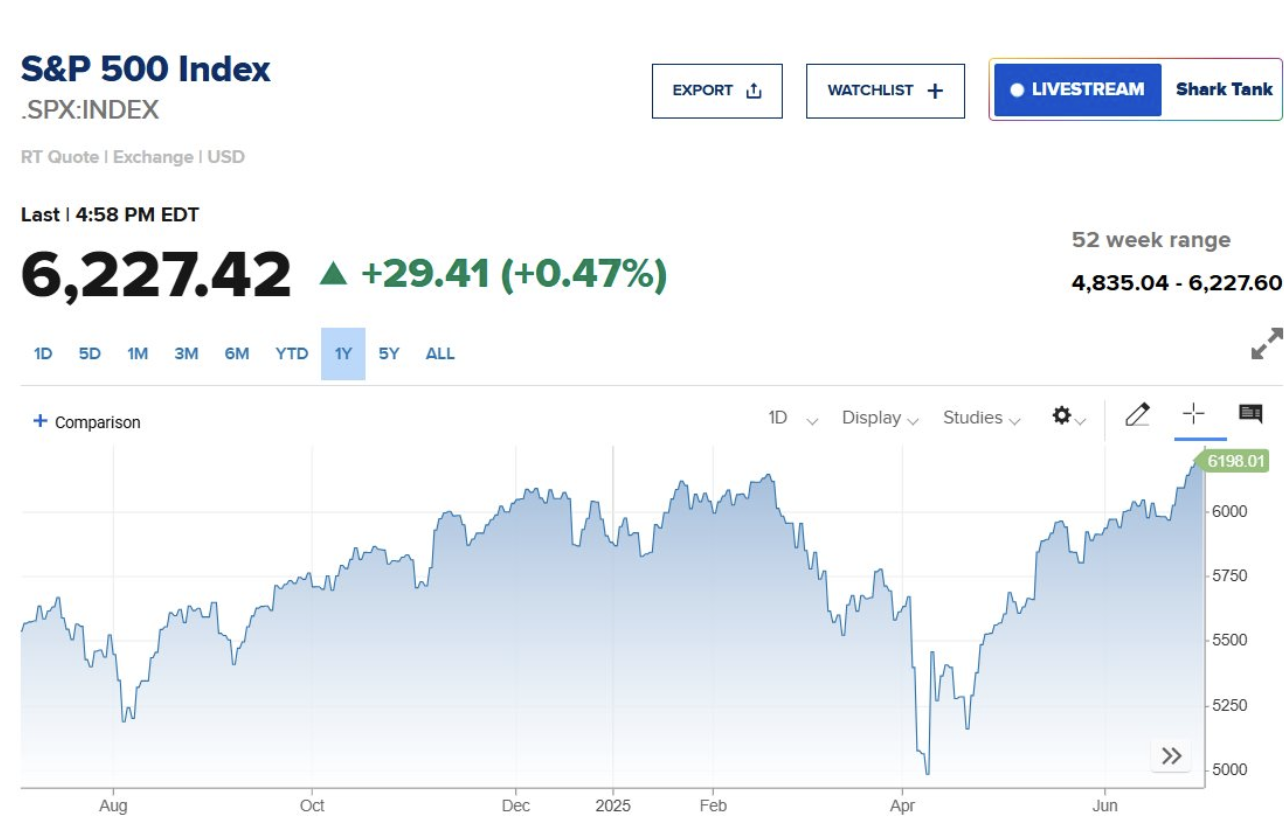 Trong phiên ngày 2/7, chỉ số S&P 500 lập đỉnh sau thông tin về đàm phán thương mại Việt - Mỹ. Tuy nhiên, báo cáo việc làm lĩnh vực tư nhân trong tháng 6 bất ngờ giảm lại làm dấy lên lo ngại về sức khoẻ nền kinh tế Mỹ.