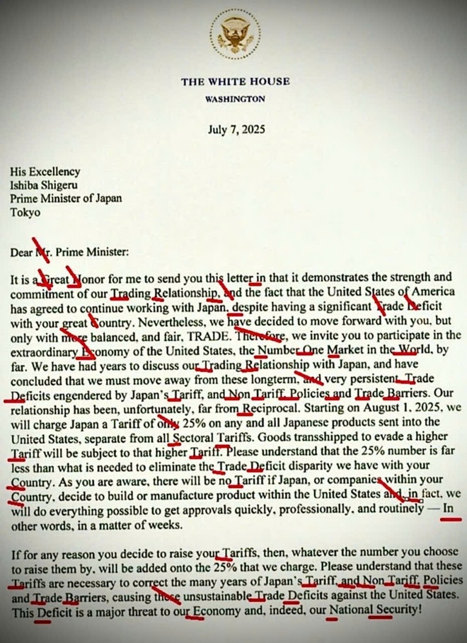 Trước đó, vào ngày 6/7, ông Trump đã thông báo rằng chính quyền của ông sẽ gửi hơn một chục lá thư trong tuần tới, cảnh báo nếu các quốc gia không đàm phán thỏa thuận thương mại với Mỹ trước hạn chót 1/8, thuế nhập khẩu sẽ được áp dụng theo mức đã công bố. Ngay ngày hôm sau, ông bắt đầu đăng công khai các bức thư này kèm theo chữ ký quen thuộc của mình trên Truth Social.