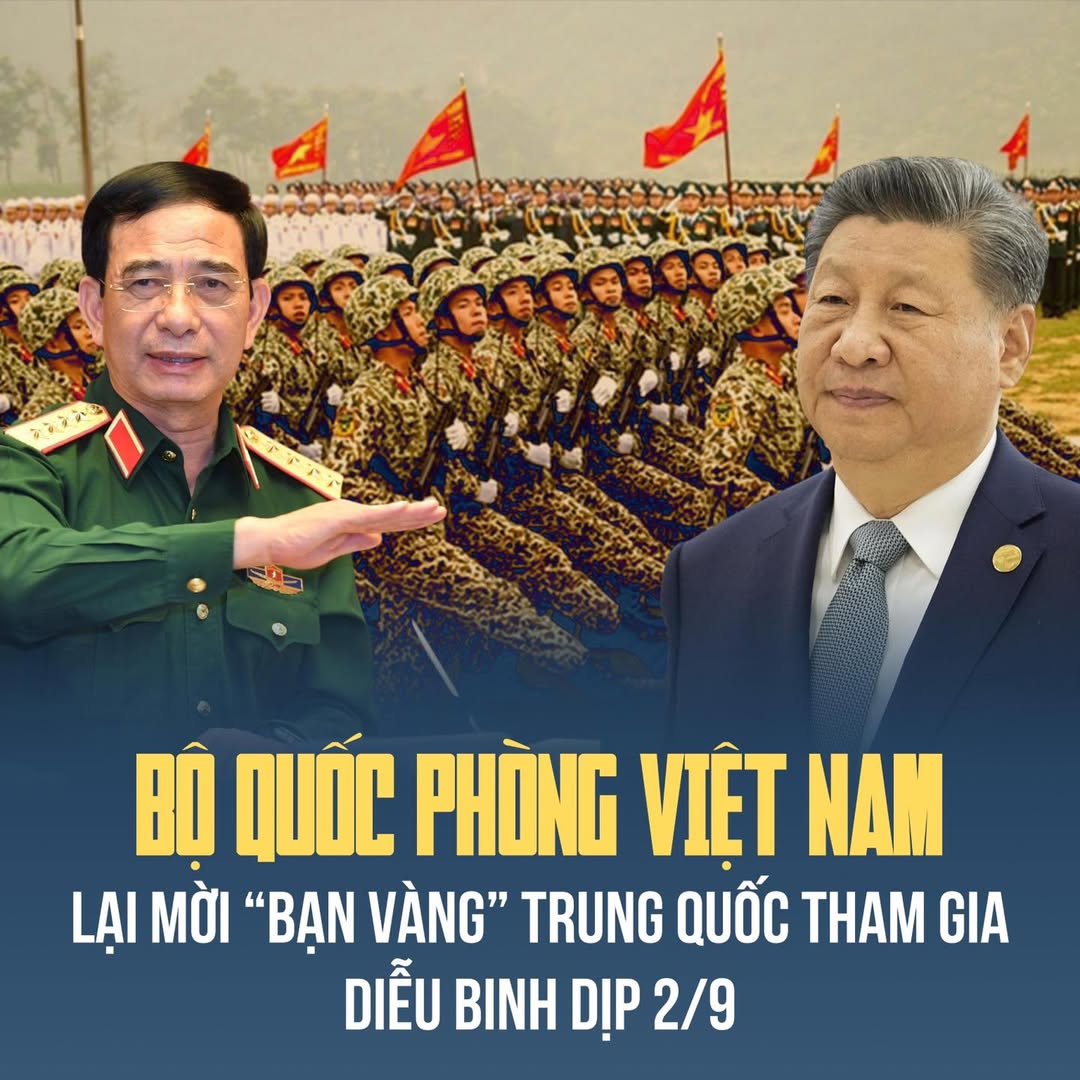 Nhân dịp kỷ niệm 80 năm Cách mạng tháng Tám và Quốc khánh 2/9. Bộ Quốc phòng đã gửi thư mời 5 nước tham gia diễu binh, trong đó có Trung Quốc- quốc gia từng bắn, từng gi.ế.t, từng chiếm đất, chiếm đảo, và giờ vẫn đang ngang nhiên dòm ngó chủ quyền Việt Nam.