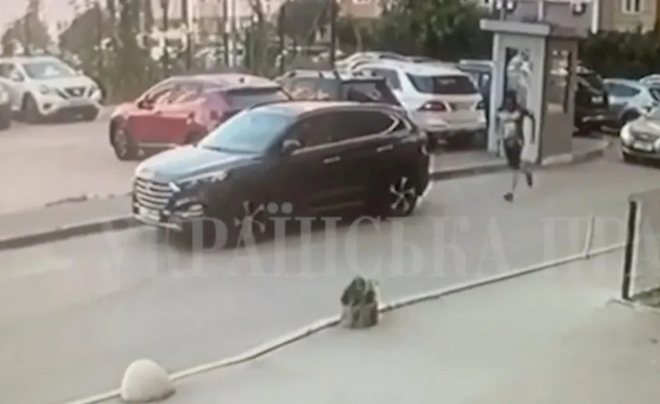 Ảnh được trích từ đoạn clip trong camera an ninh thu được cho thấy một người đàn ông chạy đến chiếc xe của nạn nhân rồi cho nổ súng hôm 10/7, ở Kiev, Ukraine. (Hình: Chụp màn hình CCTV/Ukrainska Pravda)