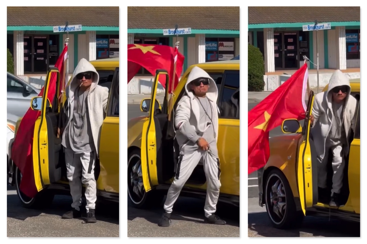 Chuyện mới xảy ra ở thành phố Westminter California: Một thằng lên cơn xì ke cầm cờ máu cộng sản gây rối cộng đồng người Việt.