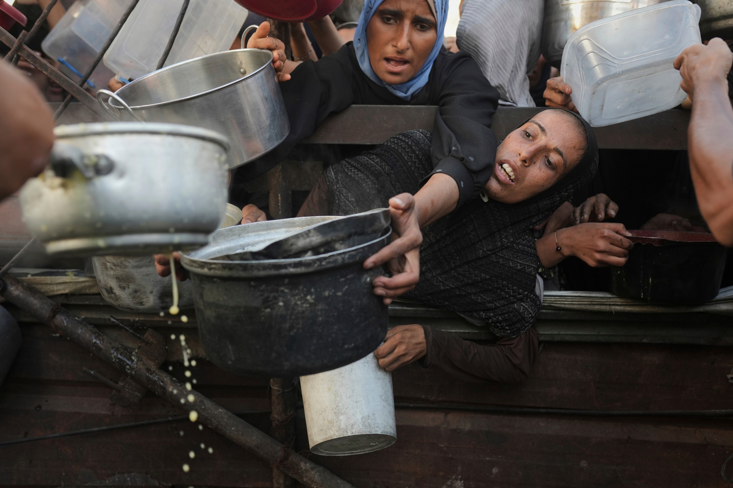 Người dân Gaza chen lấn tại các bếp ăn cộng đồng khi nạn đói hoành hành, hàng viện trợ bị hạn chế lưu thông.