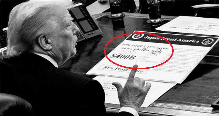Điều này dường như ám chỉ kế hoạch đầu tư của Nhật Bản vào Hoa Kỳ, điều mà Trump đã giải thích trong bài đăng trên mạng xã hội của mình. Tuy nhiên, Trump đã sử dụng một con số khác trong bài đăng của mình, thậm chí còn khác với số tiền đã điều chỉnh trên thẻ, nói rằng Nhật Bản sẽ đầu tư 550 tỷ đô la vào Hoa Kỳ.