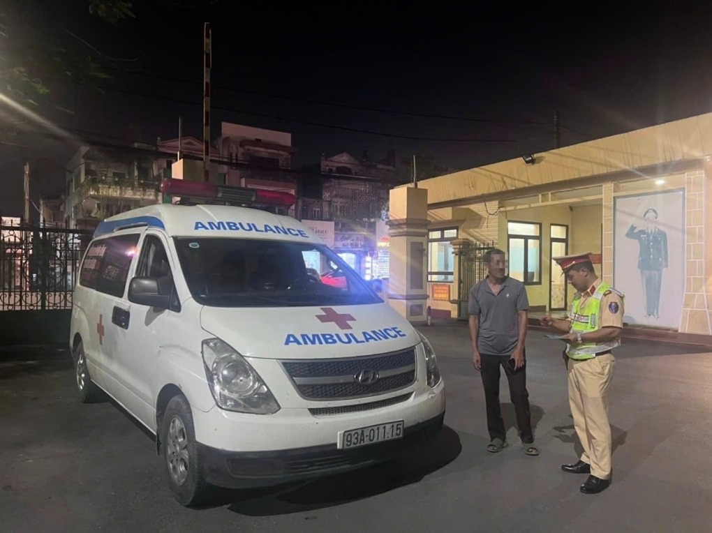 Ngày 29/7, Phòng Cảnh sát giao thông, Công an tỉnh Thái Nguyên cho biết vừa lập biên bản xử phạt vi phạm hành chính đối với nam tài xế 50 tuổi, trú xã Phú Bình về hành vi điều khiển xe cứu thương khi không có bằng lái.