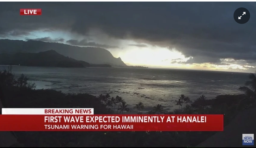 Tại vịnh Hanalei, phía bắc đảo Kauai, mặt biển được cho là đã rút xa tới hơn 30 m, theo thông tin từ phóng viên tại hiện trường.