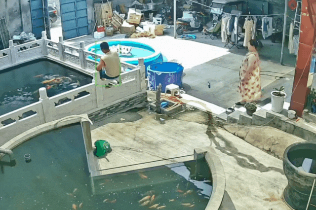 Trên mạng xã hội Douyin, người dùng có tài khoản tên Shuai Shuai đã thu hút sự chú ý với đoạn clip dài 11 giây trích từ camera an ninh đặt trong sân nhà. Clip ghi lại khoảnh khắc anh đang ngồi thong thả bên hồ cá Koi thì bất ngờ vợ từ trong nhà bước ra và đạp mạnh khiến anh rơi xuống hồ nước.