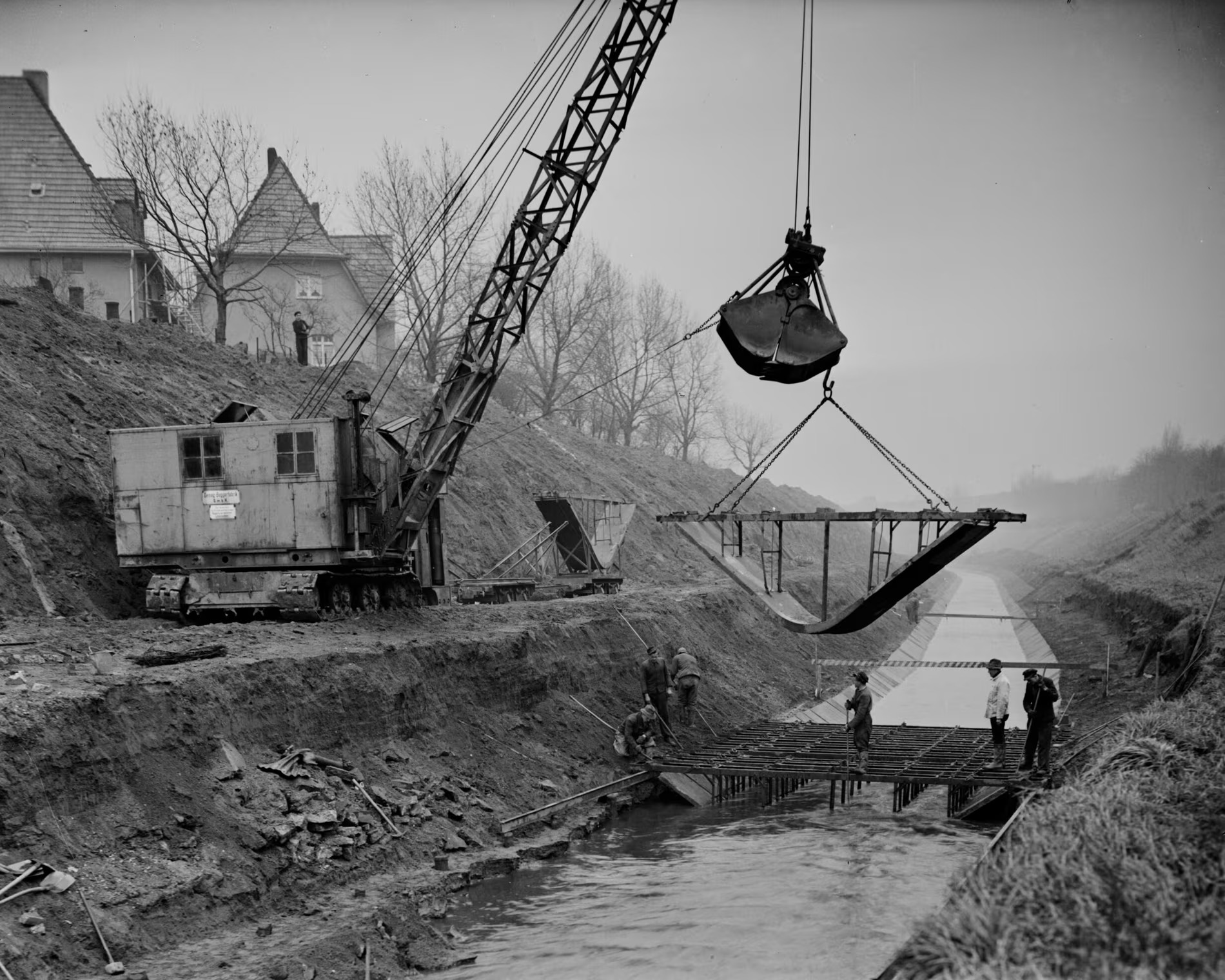 Lo ngại ảnh hưởng đến lợi nhuận, các ông trùm công nghiệp Ruhr hợp tác với chính quyền địa phương lập ra Emschergenossenschaf t – hiệp hội quản lý nước đầu tiên của Đức. Tuy nhiên, các kỹ sư không thể xây dựng hệ thống thoát nước ngầm do đất liên tục lún vì hoạt động khai thác than. Họ thay vào đó đổ chất thải trực tiếp xuống dòng Emscher, sau đó nắn thẳng dòng chảy và lót bê tông.