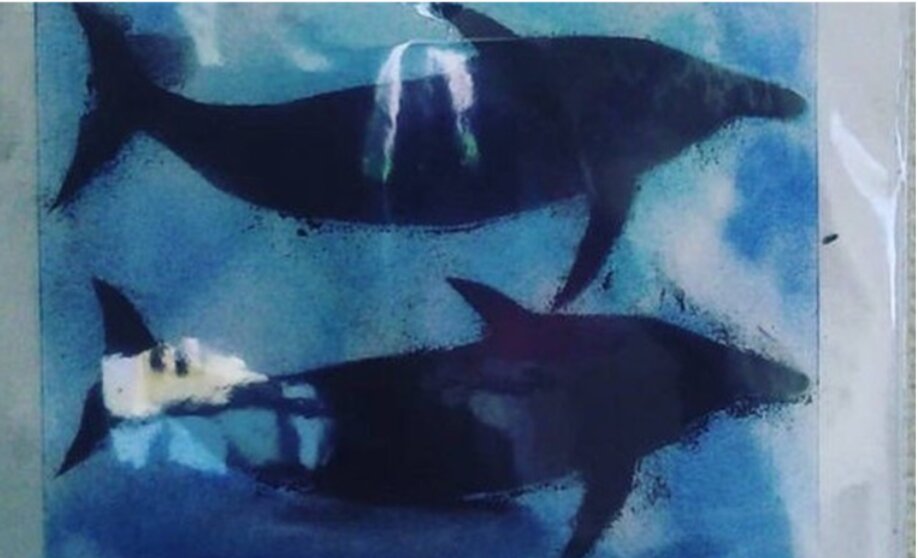 Bức tranh 2 chú cá heo màu đen của bé gái bị cô giáo yêu cầu vẽ lại