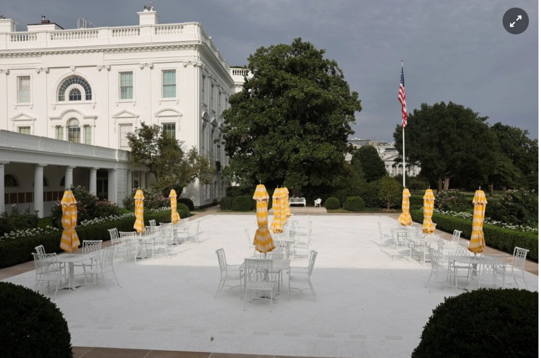 Vườn Hồng mới lát đá tại Nhà Trắng vào ngày 6/8. Ảnh: Reuters.