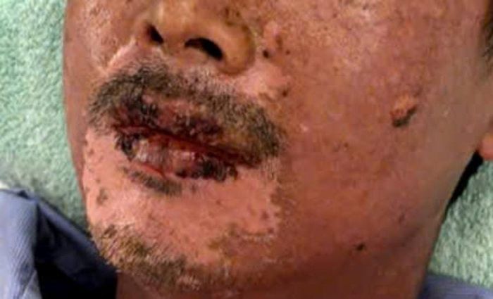 Bệnh nhân tên Đ.N.T. (nam giới, 38 tuổi, trú tại Sơn La), nhập viện tại Khoa Nội tổng hợp, Bệnh viện Bệnh Nhiệt đới Trung ương trong tình trạng da toàn thân nổi bọng nước, chuyển màu thâm đen, đau rát vòm họng, rộp loét miệng, mắt mù tạm thời, toàn thân nóng đỏ.