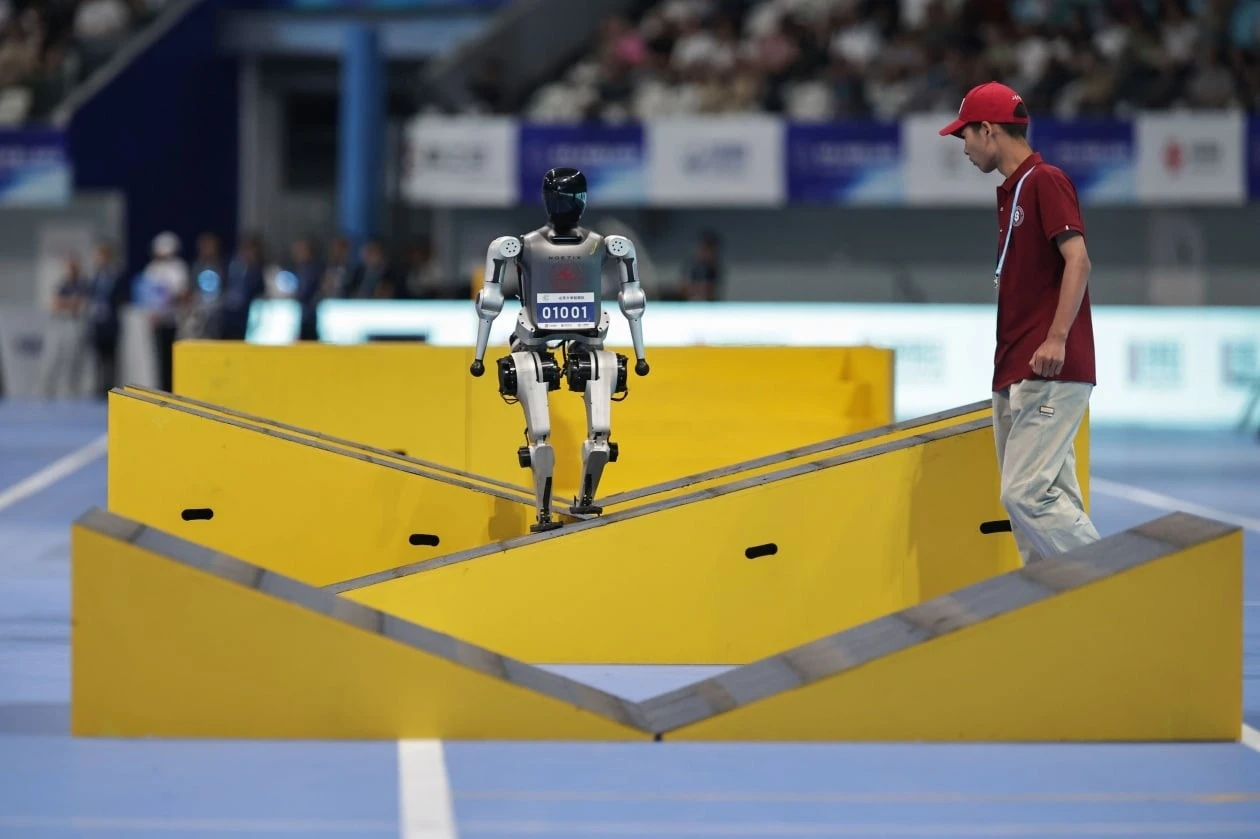 Một robot trong cuộc đua vượt chướng ngại vật tại World Humanoid Robot Games 2025. (Ảnh: Shutterstock)