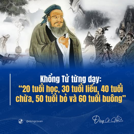 “20 tuổi học, 30 tuổi liều, 40 tuổi chừa, 50 tuổi bỏ và 60 tuổi buông.”
