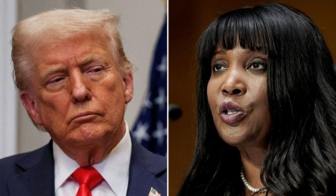 Tổng thống Mỹ Trump (trái) và bà Lisa Cook. Ảnh: Reuters