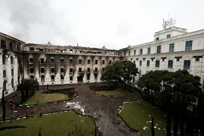 Tòa nhà chính phủ Nepal bị đốt cháy. Ảnh: India Today