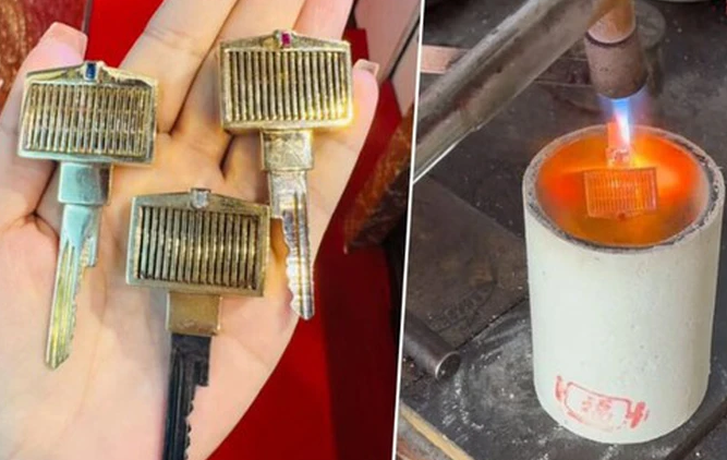 Vào ngày 3/7/2025, người dùng TikTok @bussabongsomphamit của tiệm vàng Namo Ban Chang Thong, Thái Lan đã đăng một đoạn clip ghi lại cảnh một khách hàng mang chìa khóa xe Rolls-Royce đến để nấu chảy và bán, vì chiếc chìa khóa này được làm bằng vàng 18K.