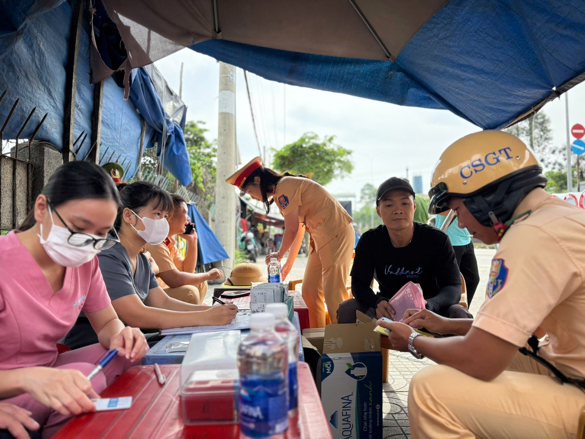 Sáng 12/9, Đội CSGT Rạch Chiếc thuộc Phòng CSGT Công an TP.HCM đã phối hợp với Công an phường Thủ Đức, TP.HCM kiểm tra chất kích thích đối với các tài xế lái xe ra vào cảng Trường Thọ, phường Thủ Đức.