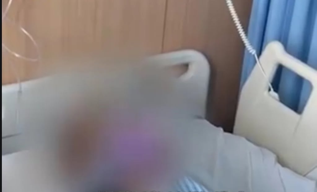 Ông Lý, nằm trên giường bệnh, được chẩn đoán mắc bệnh ung thư dạ dày vào năm 2022 và phải nghỉ làm. Ảnh: QQ.com