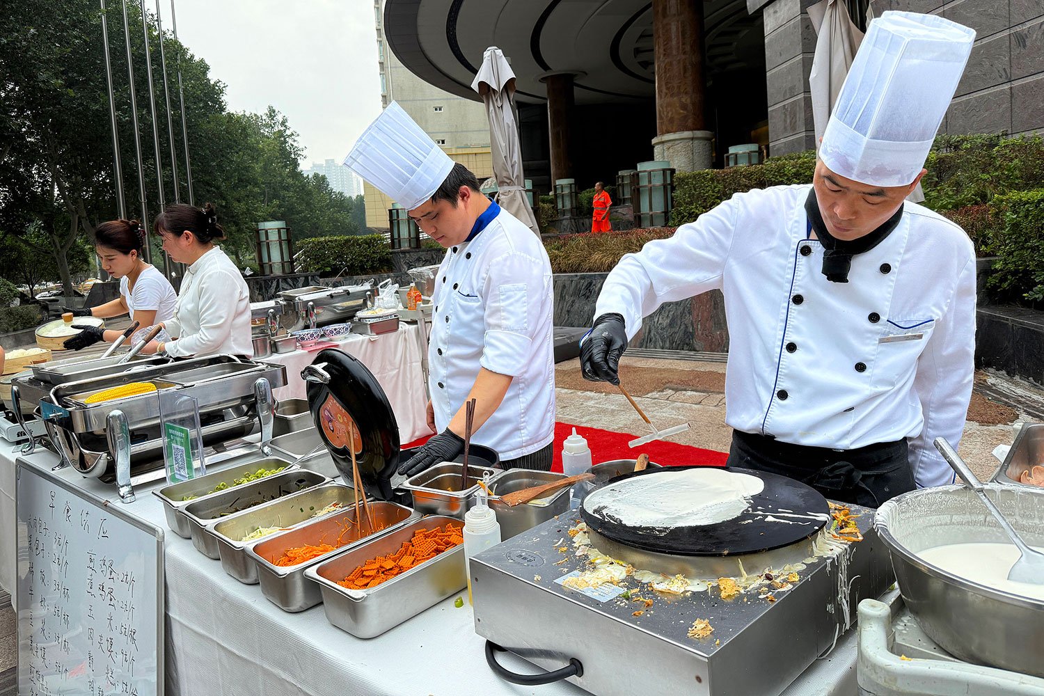 Nhiều khách sạn cao cấp ở Trung Quốc đã chọn ra vỉa hè bán đồ ăn mang đi như một cách tồn tại và giữ chân nhân viên.